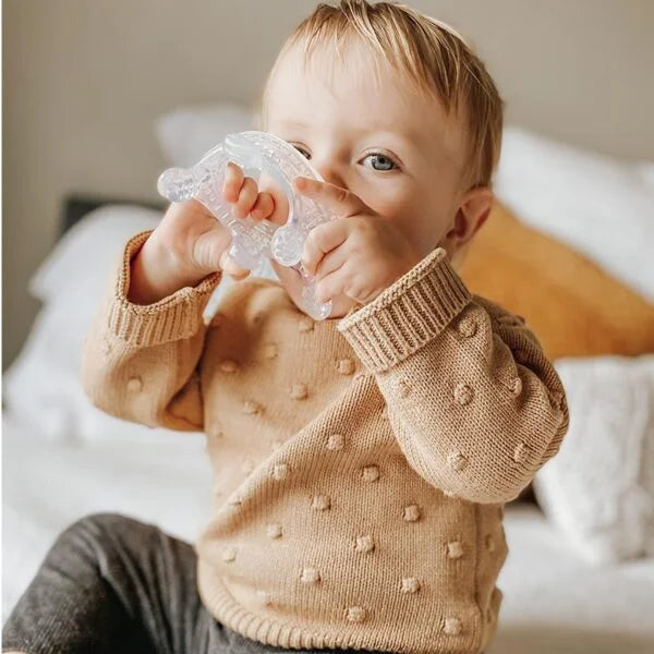 Silikonska krunica za zube je super mekana i fleksibilna, a njen oblik i veličina olakšavaju držanje malim rukama. Specijalan dizajn ne samo da pomaže u smirivanju bolnih desni vaše bebe, već takođe podstiče senzorni razvoj i motoričke sposobnosti mališana!