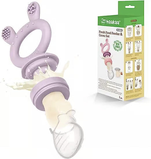 Haakaa mljackalica za svježu hranu i smrznute poslastice od maminog mlijeka nije samo ukusan oslonac za bolne desni, već je i izvanredan način za sigurno uvođenje novih okusa u jelovnik vaše bebe, bez rizika od gušenja.