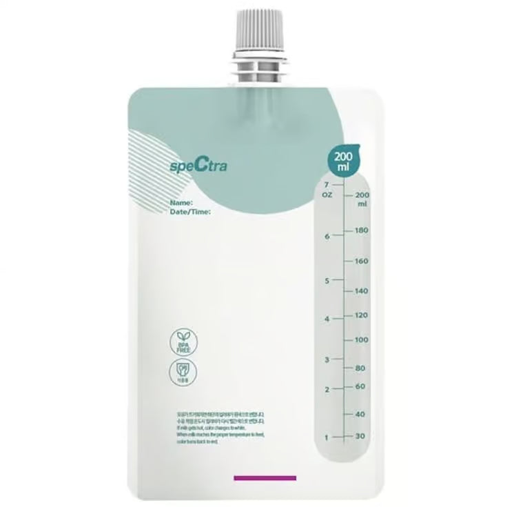 Spectra vrećice za skladištenje mlijeka su idelane za čuvanje vašeg dragocjenog mlijeka u frižideru ili zamrzivaču. Spectra vrećice su za jednokratnu upotrebu i dolaze prethodno sterilisane. Zatvarač na vrhu omogućava dugo i bezbjedno skladištenje. Dvostruko su obložene i osiguravaju čvrsto zatvaranje, što garantuje izolaciju bez curenja za izdojeno majčino mlijeko. Svaka vrećica kada je napunjena majčinim mlijekom će stajati uspravno omogućavajući tačna očitavanja sa mjerne skale. Nakon punjenja vrećice za mlijeko, Spectra toplo preporučuje da svaku kesicu označite tačnim datumom upotrebe koji se nalazi na prednjoj strani. Važno je zapamtiti da ostavite najmanje 2,5cm mlijeka od zatvarača kada čuvate kese u zamrzivaču jer će se majčino mlijeko proširiti dok se zamrzava.